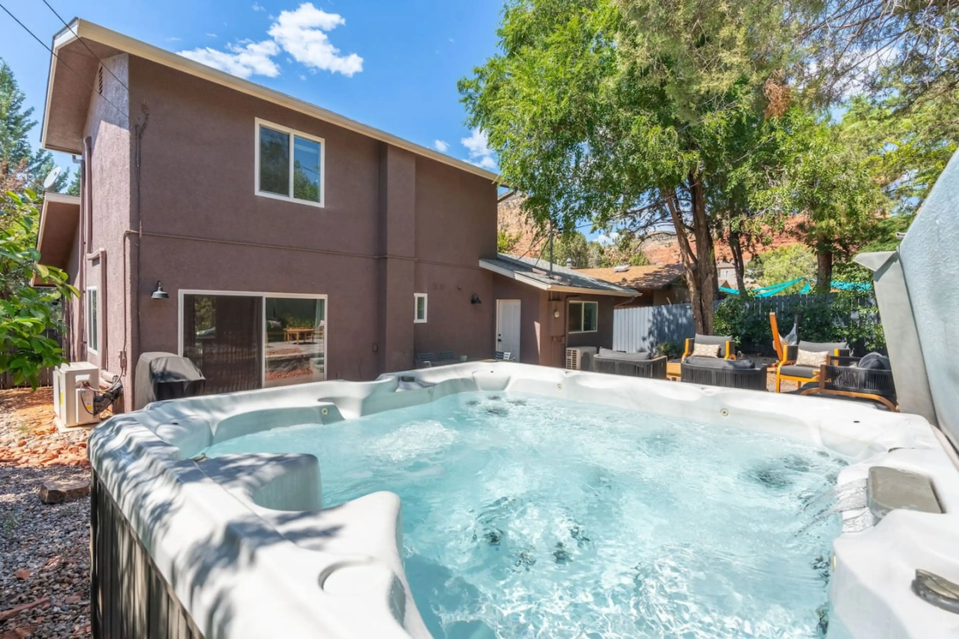 Located in desirable West Sedona, Newly renovated Amethyst Retreat has gorgeous red rock views, modern boho decor and a spacious fenced backyard with hot tub, sitting areas, hammock and more. Walking distance to sugar loaf trail and walking distance to grocery stores! STR ID #: 008628 This Sedona ...